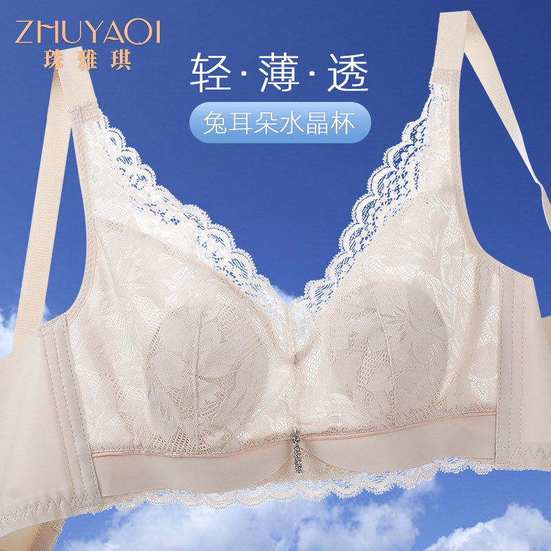 时尚兔耳朵薄款内衣 透气防走光小胸聚拢胸罩性感蕾丝水晶杯文胸