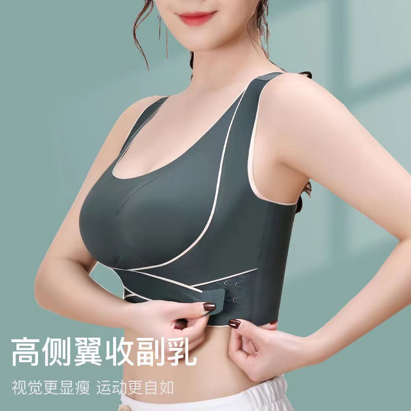 交叉前扣背心式文胸大码运动美背聚拢收副乳上托矫正驼背无痕内衣