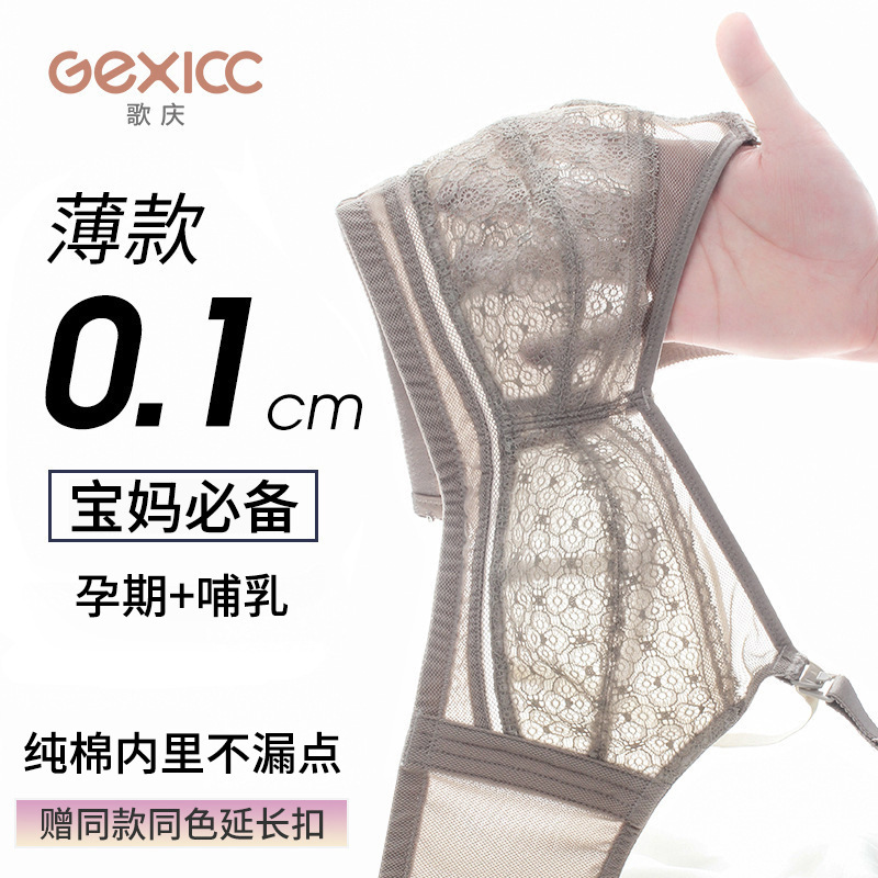 歌庆哺乳文胸高端防下垂聚拢大胸显小收副乳薄款蕾丝喂奶孕妇内衣