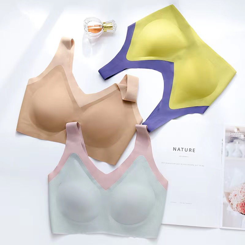 防下垂无钢圈大胸显小睡眠女士文胸夏季冰丝无痕内衣亲氧聚拢定型