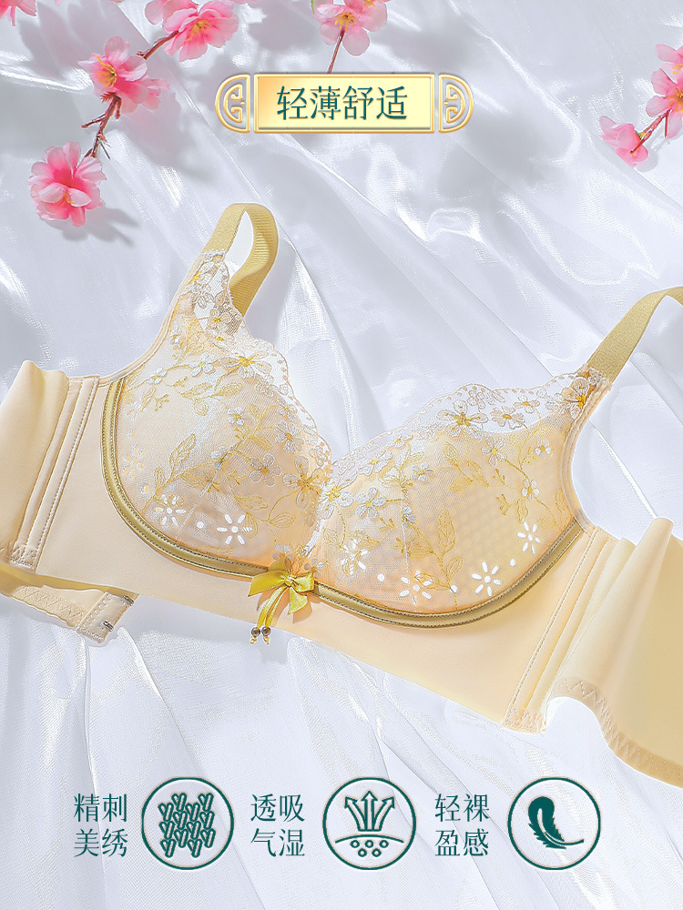 夏季法式蕾丝吊带内衣薄款无钢圈舒适美背三角杯胸罩透气无痕文胸