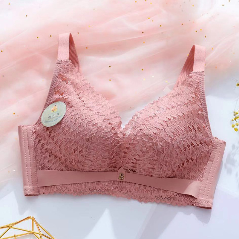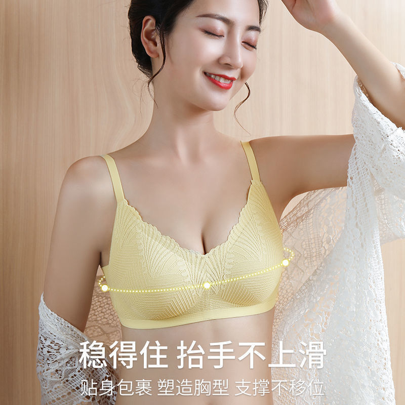 2022乳胶棉中厚杯无钢圈内衣聚拢铜纤维透气文胸调整型蕾丝胸罩