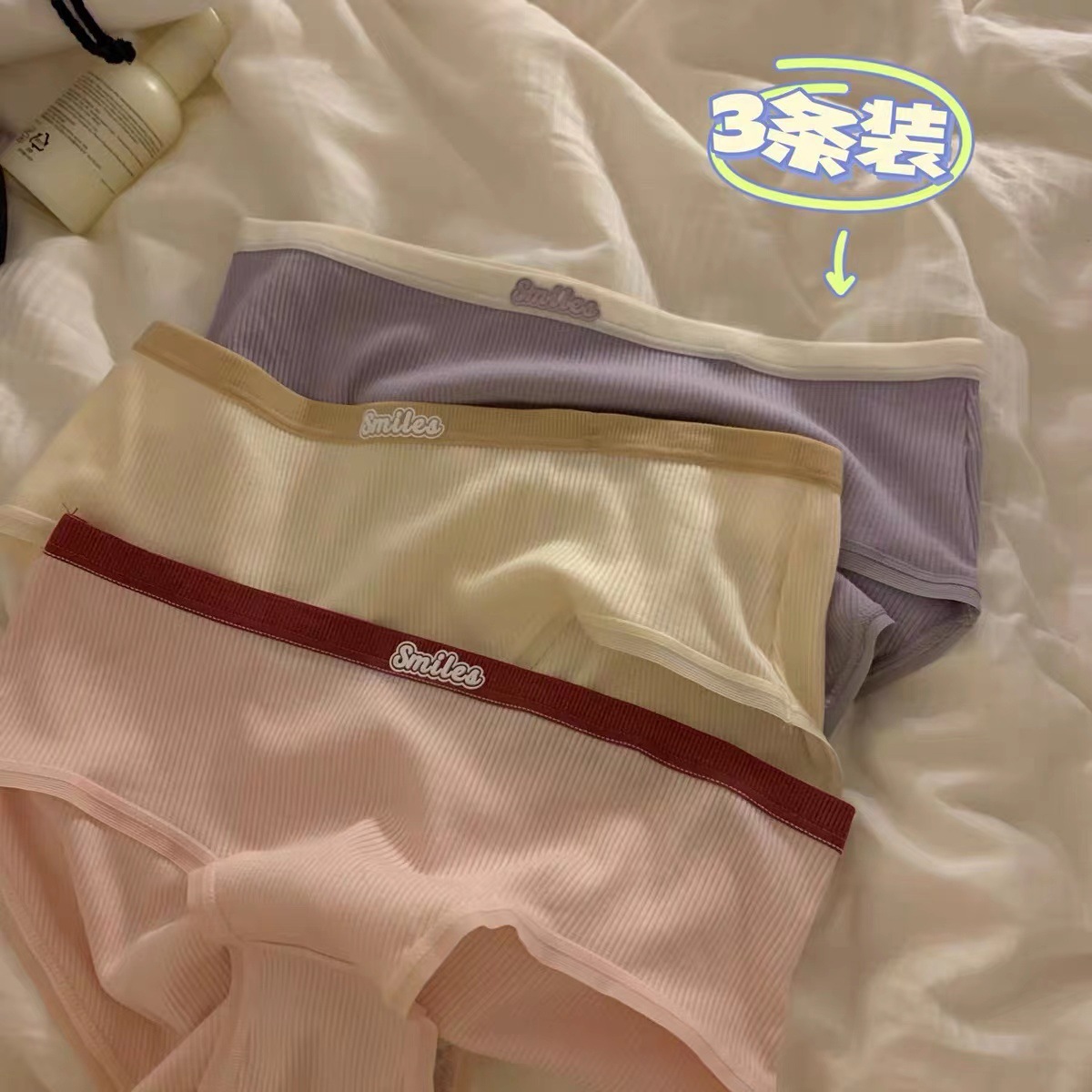 "总有一束光 温暖着你" 螺纹棉内裤女透气中腰日系少女学生三角裤