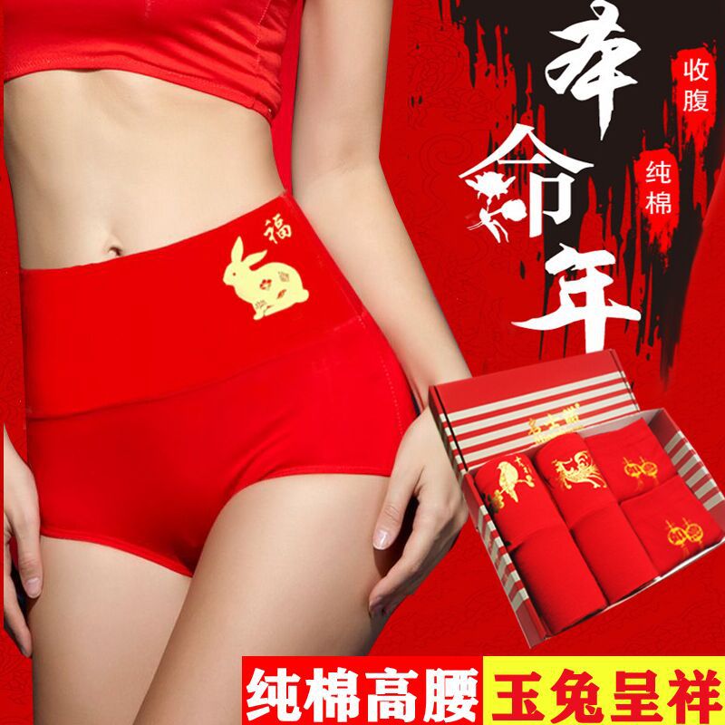 兔年本命年大红色内裤女士纯棉大码高腰全棉档部三角裤属兔短裤头