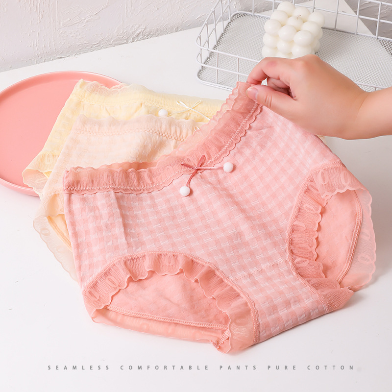 女士无缝中腰加大码内裤蕾丝边高弹力紫杉醇抗菌净化底裆部三角裤