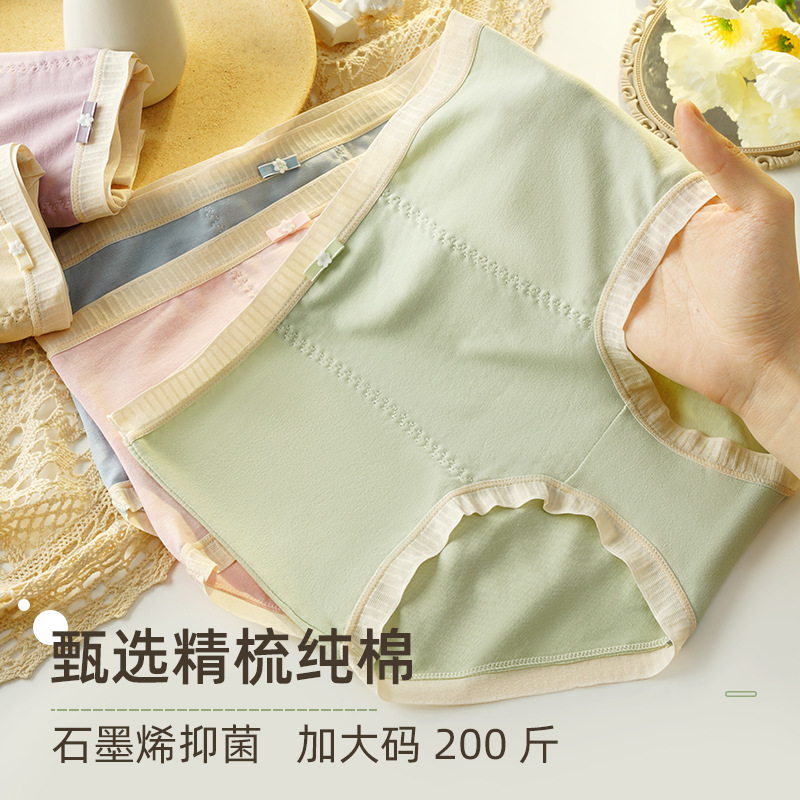 女士纯棉大码内裤女200斤可爱高腰轻收腹提臀裤抗菌女式日系