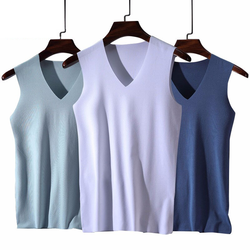 夏季男士冰丝背心无修身痕冰爽运动打底弹力宽肩内搭T恤薄款代发