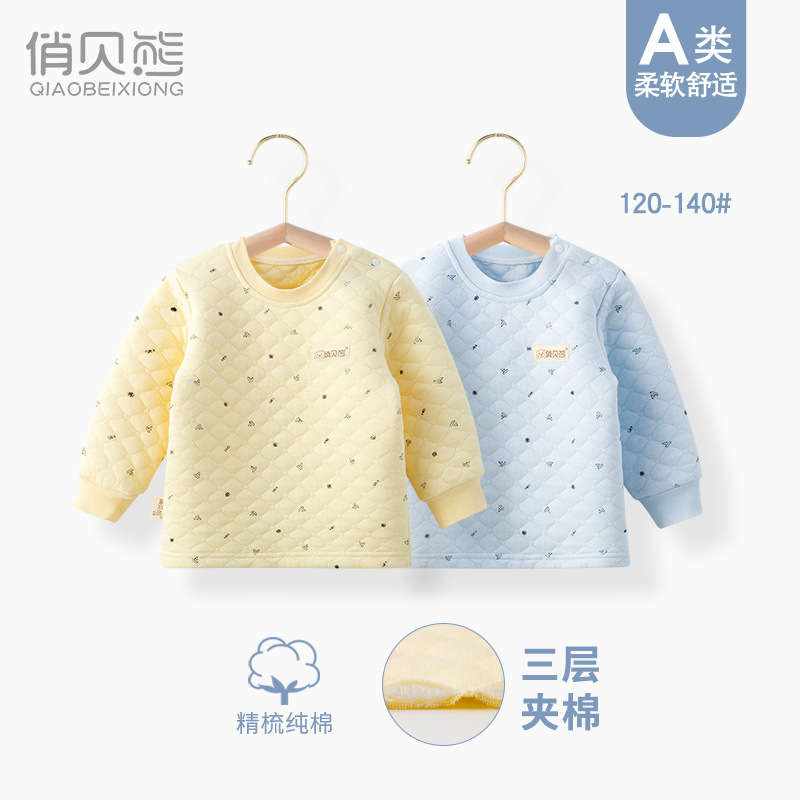 冬季加棉三层夹棉新生男女童春秋婴儿打底保暖秋衣内穿初生单上衣