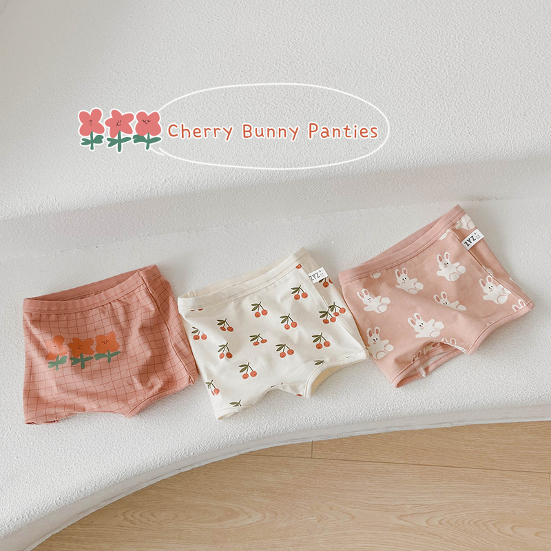 N089儿童内裤樱桃格子短裤夏季卡通纯棉女童透气内裤平角
