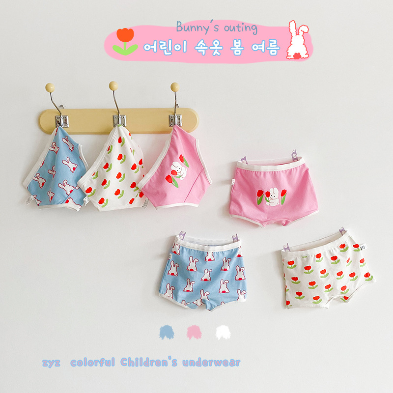 N062儿童内裤代发只一只夏季薄款卡通兔子小花短裤棉可爱女童内裤