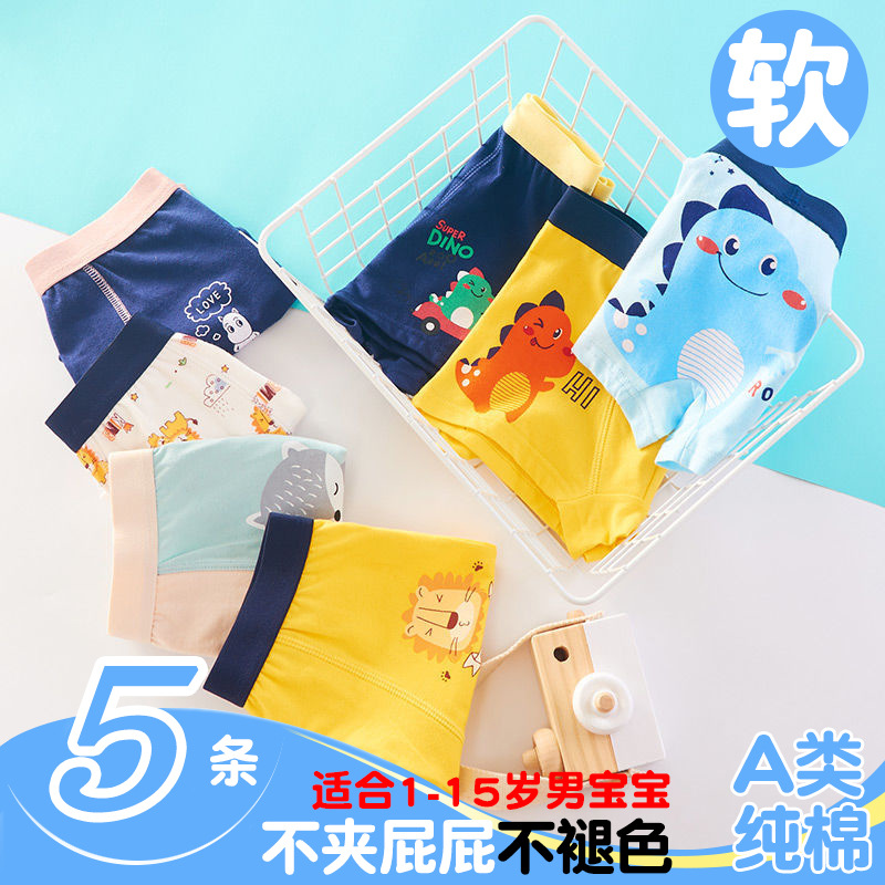 5条装童内裤男童4卡通恐龙宝宝平角裤中大童男孩四角内裤