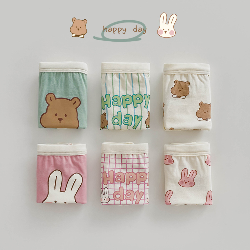 N090儿童内裤夏季卡通小熊纯棉内裤条纹字母男女童内裤