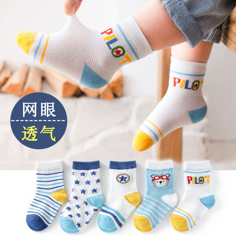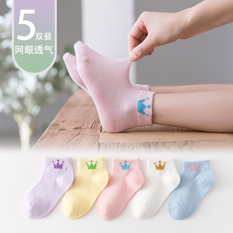5双装儿童袜子夏季薄款卡通宝宝纯中筒棉网眼婴儿袜子春夏新款