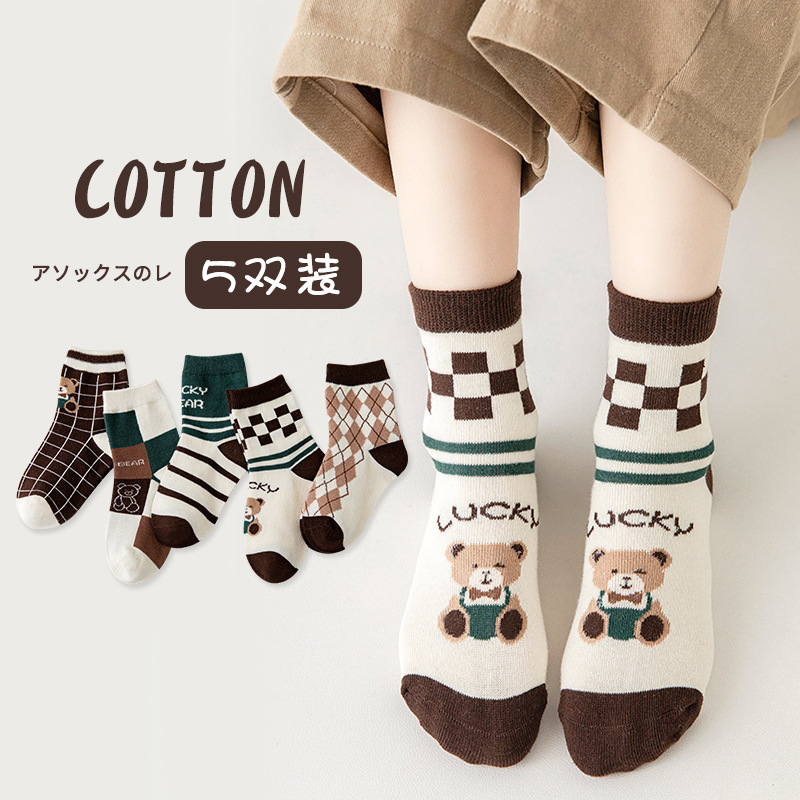 五双装儿童袜子2023春季新款女孩男童袜子批发卡通中大童小孩袜子