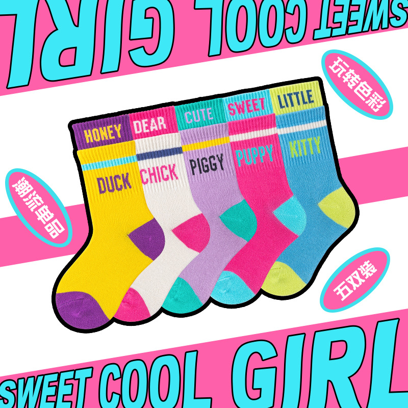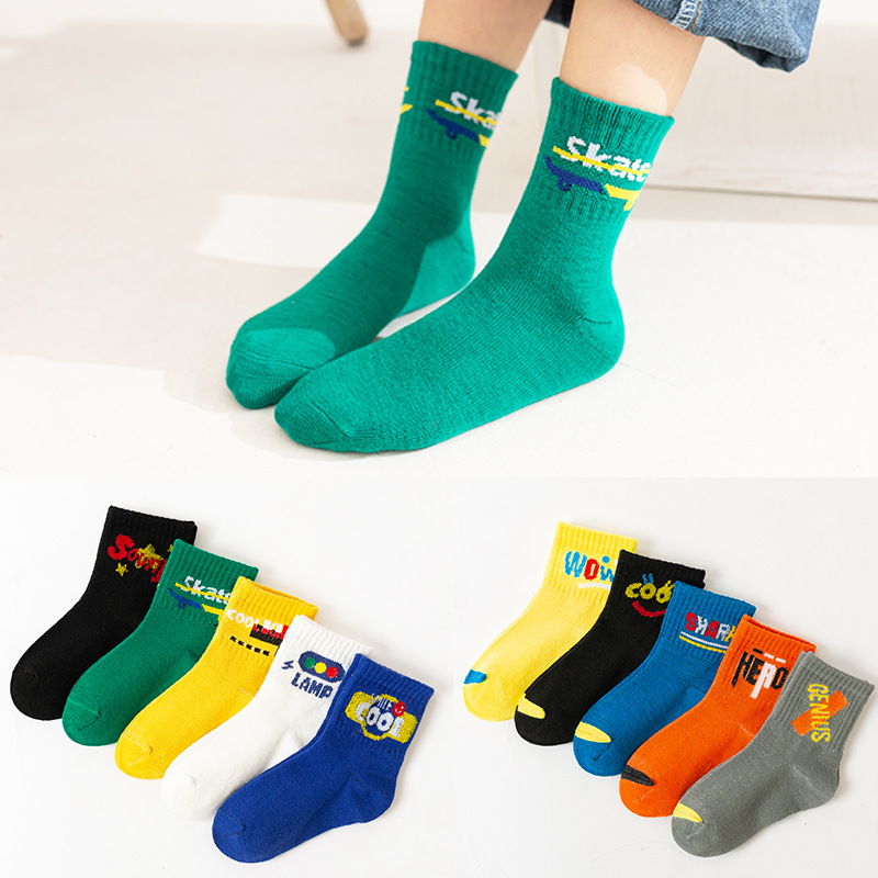 5双装秋冬宝宝袜子卡通中筒袜棉儿童学生袜儿童袜子