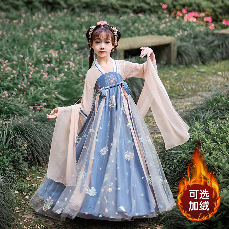 汉服女童2022冬款加绒古风公主襦裙超仙儿童古装小女孩连衣裙