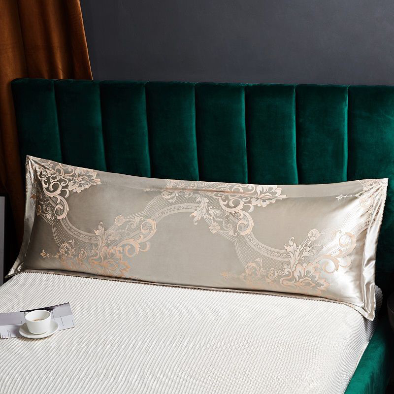 双人长枕套纯棉贡缎提花1.2/1.5/1.8m米情侣婚庆枕头套加长枕芯套