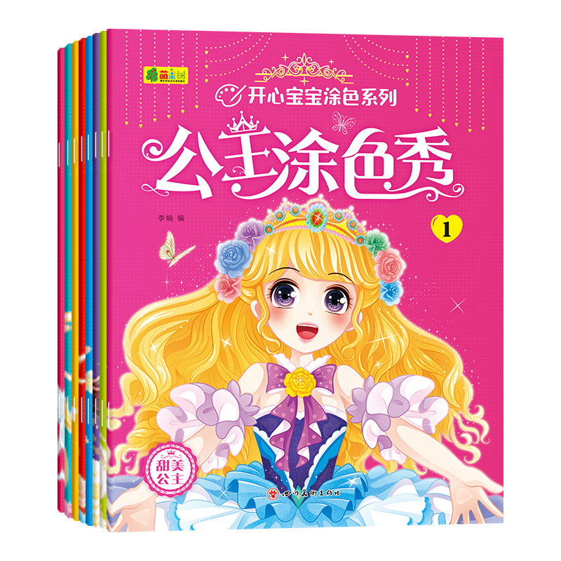 公主涂色秀儿童画画本女孩手绘美少女图画书小学生涂鸦学画填色本