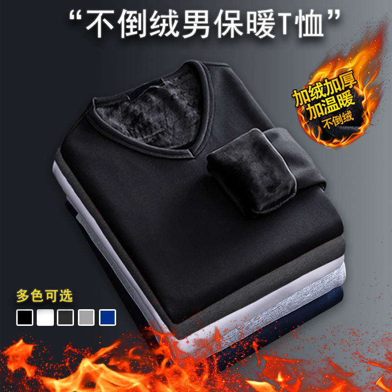 男长袖保暖加绒t恤秋冬新款圆领v领修身打底衫男韩版内搭上衣秋衣