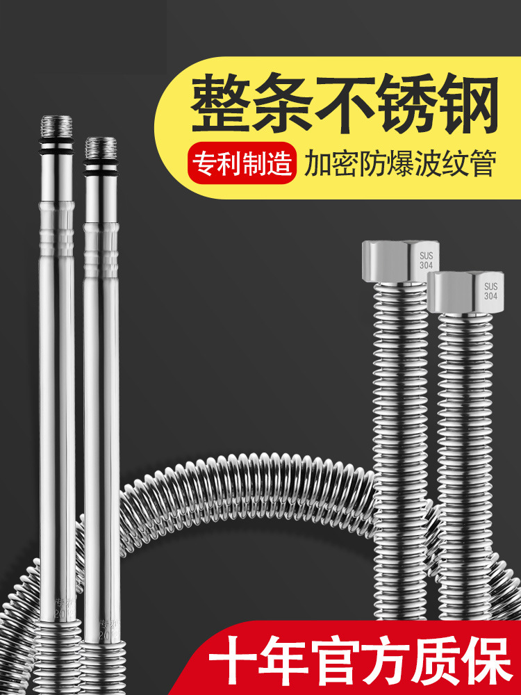 慕乐304不锈钢尖头波纹管 加长4分水龙头冷热进水软管单头上水管