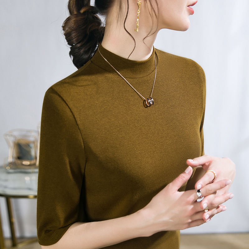 莫代尔棉上衣中领薄款打底衫女春夏2023新款内搭五分袖T恤女修身