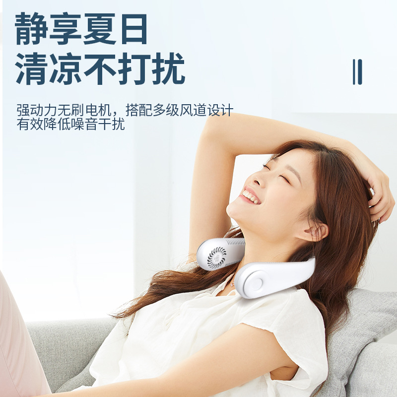 批发夏季懒人便携式风扇户外静音充电持久续航超大风力挂脖小风扇