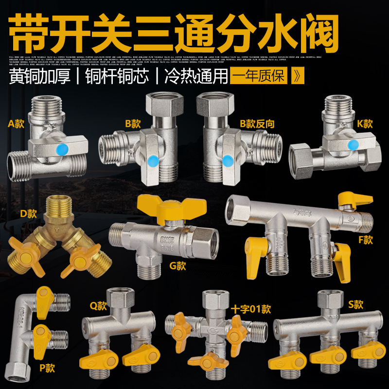水龙头角阀出水接头分水阀热水器水管带开关一进二出三四通分水阀
