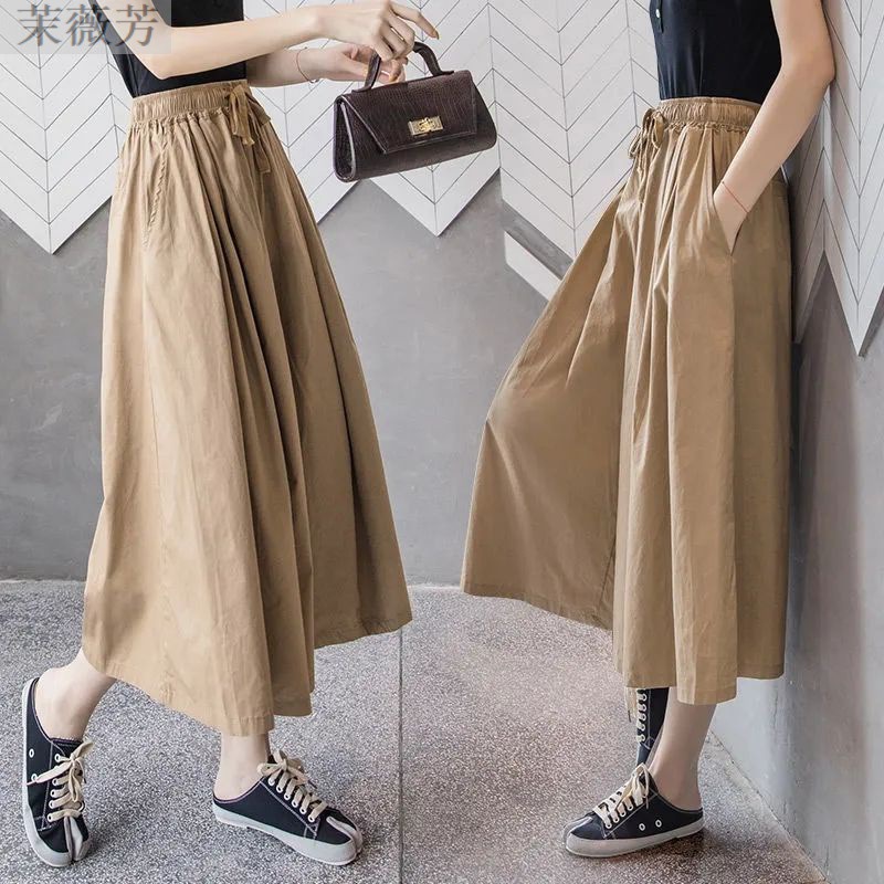 纯棉环保固色春夏新款韩版宽松九分裤高腰阔腿裤显瘦垂感休闲裙裤