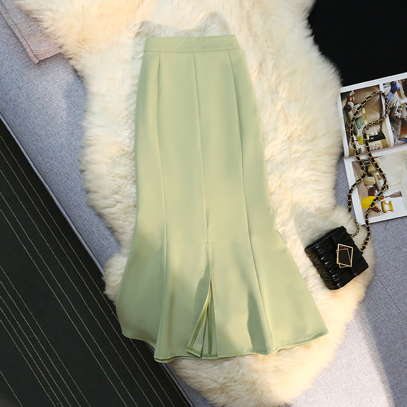 鱼尾裙女2023开叉春夏季新款高腰显瘦中长款包臀裙黑色半身长裙子