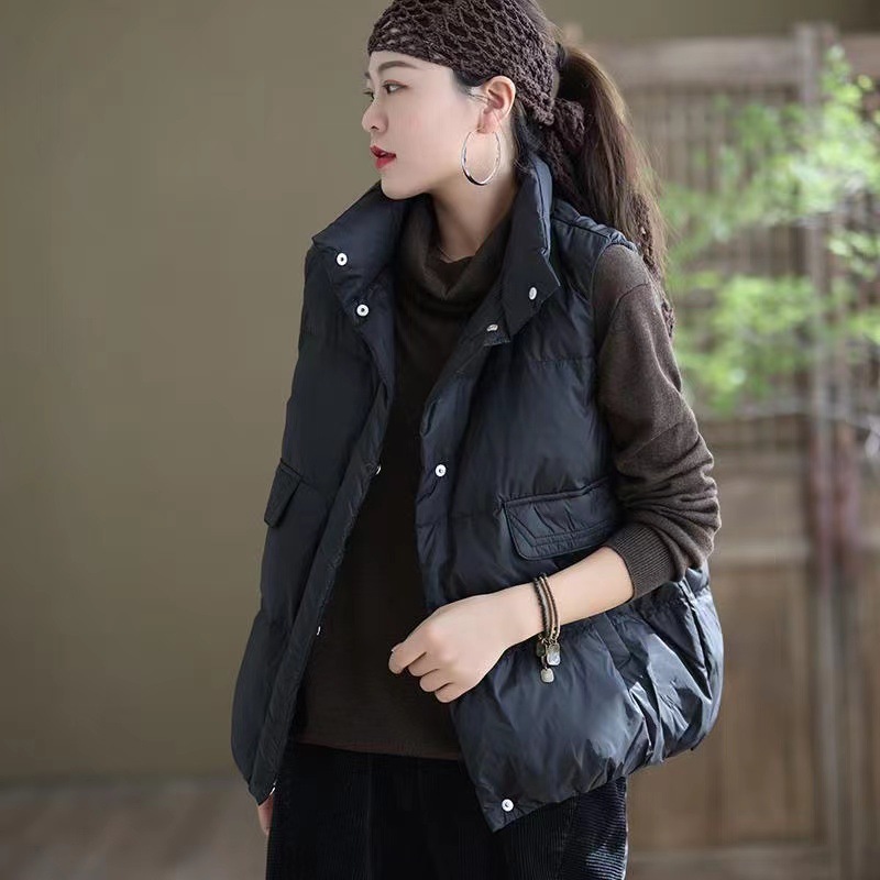 羽绒马甲女新款冬季加厚宽松大码90白鸭绒保暖短款黑色女装羽绒服