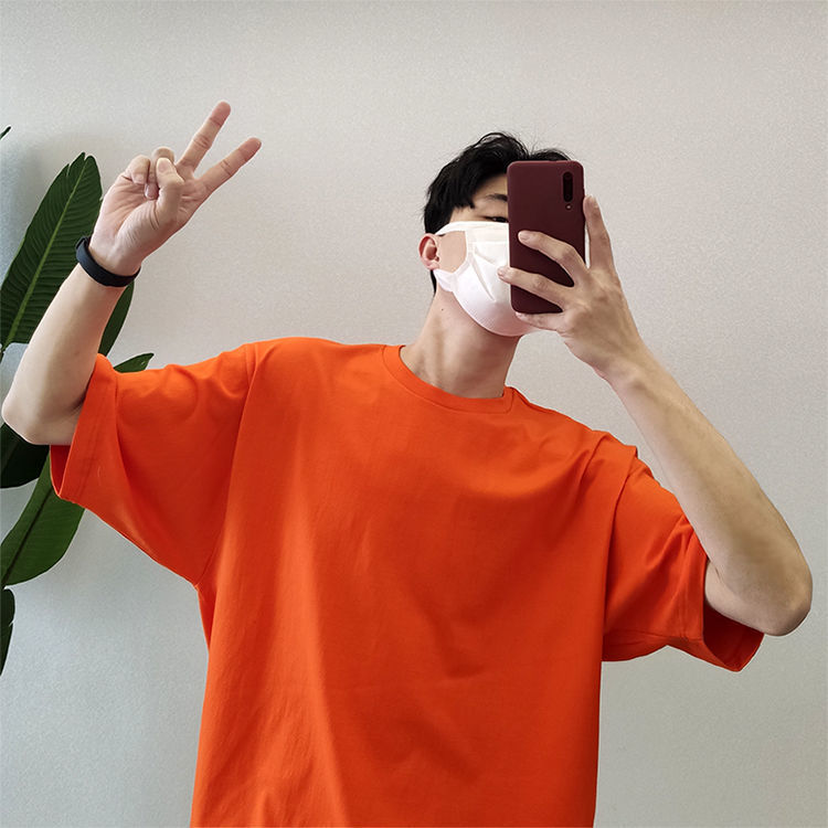 潮牌落肩休闲t批发宽松简约圆领纯色T恤印花定 制男女款一件代发