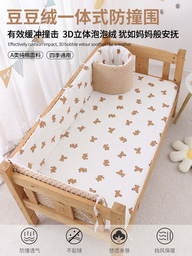 婴儿床围四季可拆洗一片式豆豆绒防撞围挡拼接床三面防摔软包纯棉