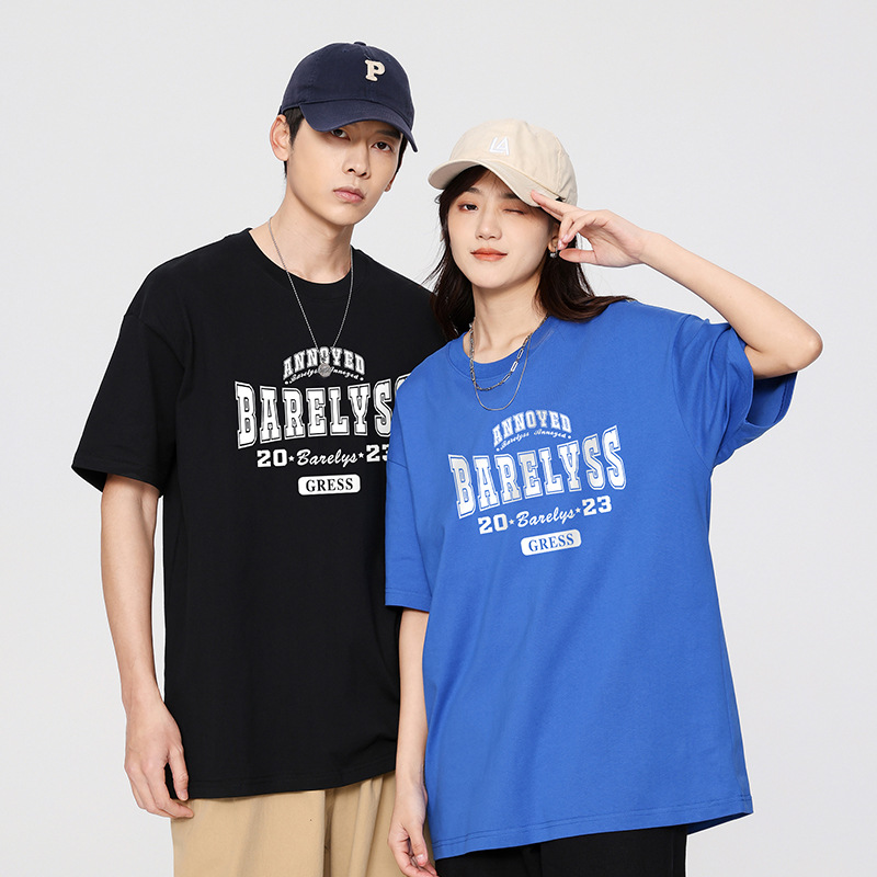 T恤男2023夏季薄款宽松百搭圆领男士T恤韩版纯棉印花落肩男士上衣