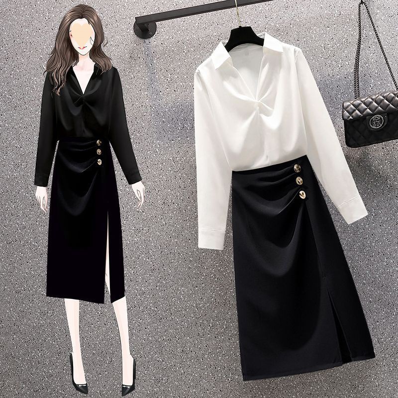 胖妹妹洋气减龄显瘦职业衬衫女春装2023大码时尚气质半身裙两件套