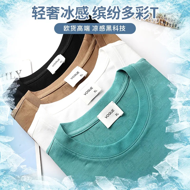 夏季提花冰丝棉短袖t恤男士宽松圆领丝光棉短袖轻奢薄款透气体恤