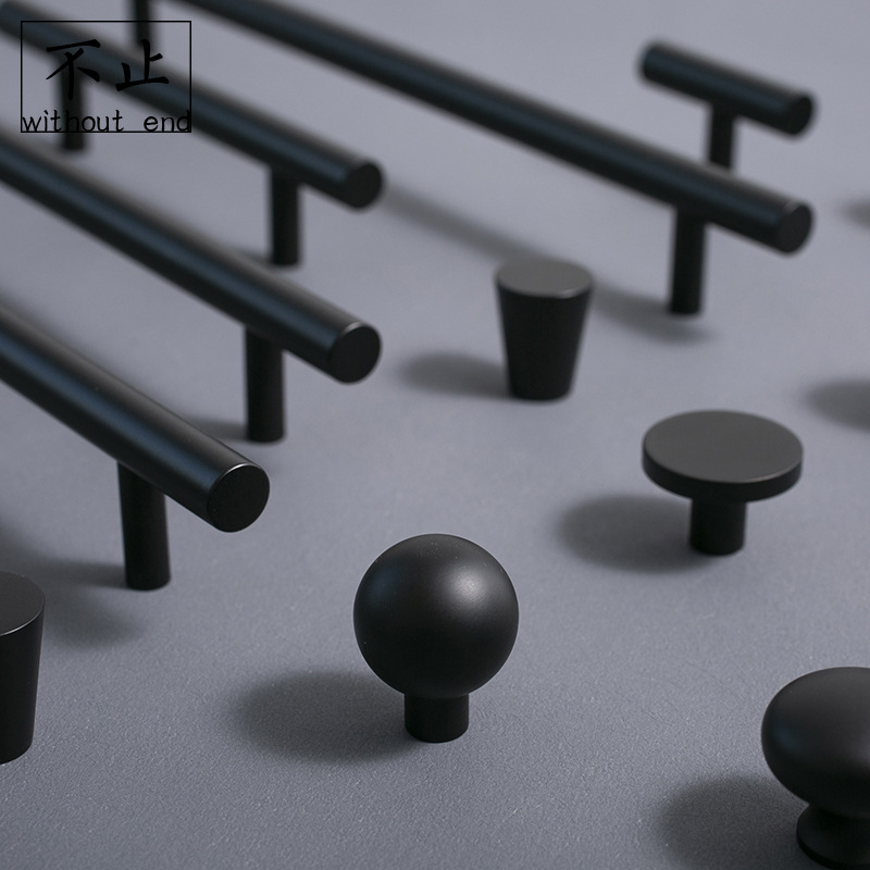 不止黄铜极简约磨砂哑光黑色衣柜橱柜鞋柜抽屉小把手黄铜长拉手