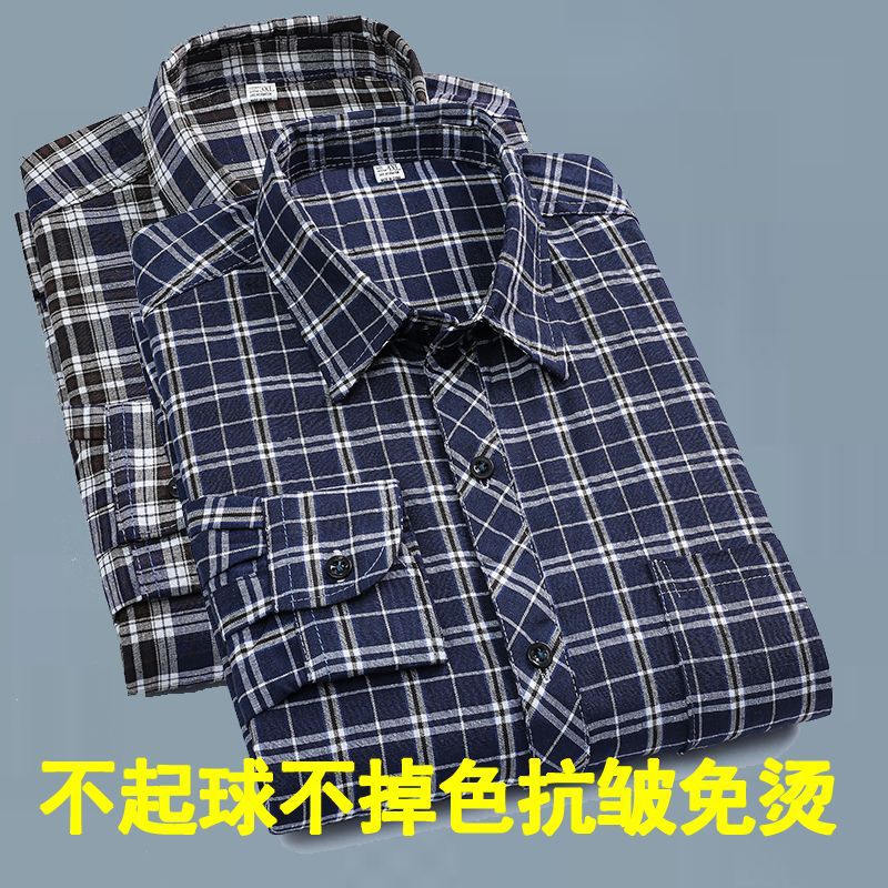 山力达迪新款长袖衬衫棉格子外套春秋夏季宽松爸爸休闲父亲薄款上
