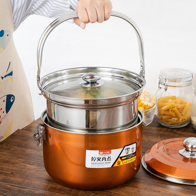 加厚304不锈钢 免火再煮锅 家用 汤蒸锅 焖烧锅锅 炖锅煮粥锅