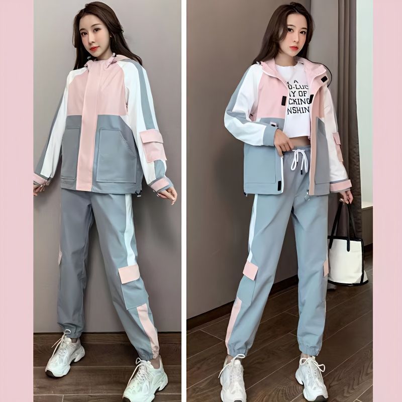 新款工装运动套装2023女春秋款时尚休闲洋气显瘦外套女服两件套潮