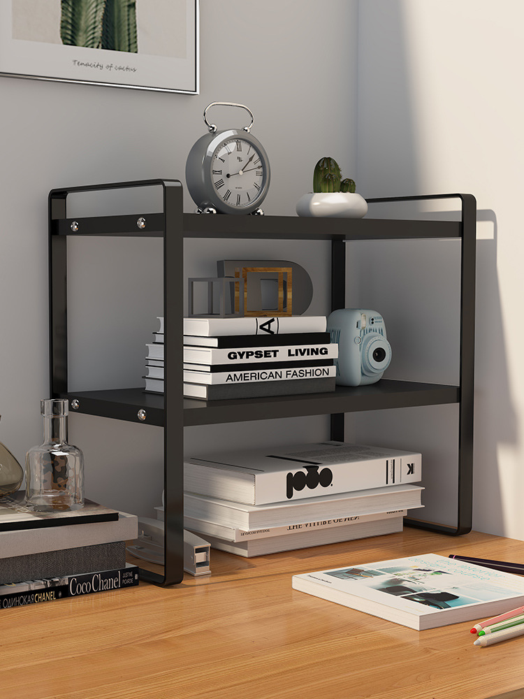 桌面置物架书架小型简易双层办公室桌上收纳整理架子铁艺书柜分层