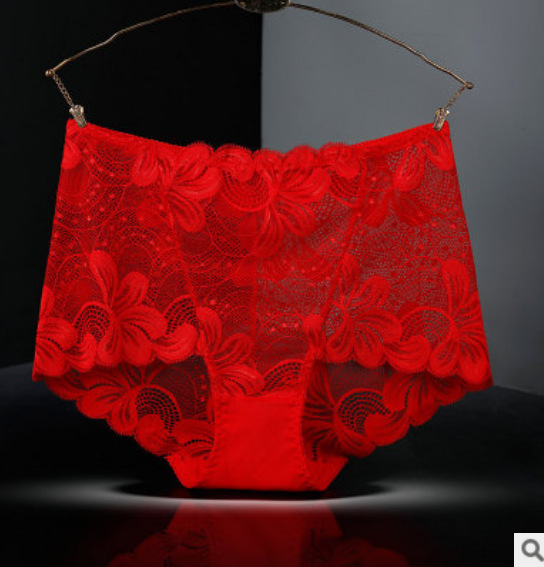 蕾丝内裤女纯棉无痕中腰大红色三角裤本命年红色牛年属牛