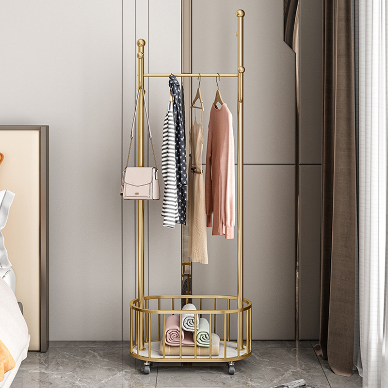 金色卧室落地铁艺衣帽架可移动带脏衣篮单杆架子网红仙人掌晾衣架