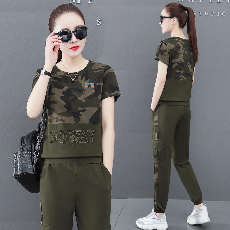 夏季迷彩套装女2022新款夏装短袖时尚洋气休闲运动服两件套薄款潮