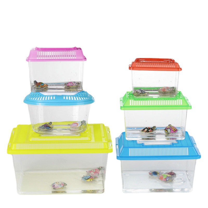 大中小号儿童手提乌龟盒 宠物饲养运输鱼盒 透明塑料金鱼缸乌龟缸