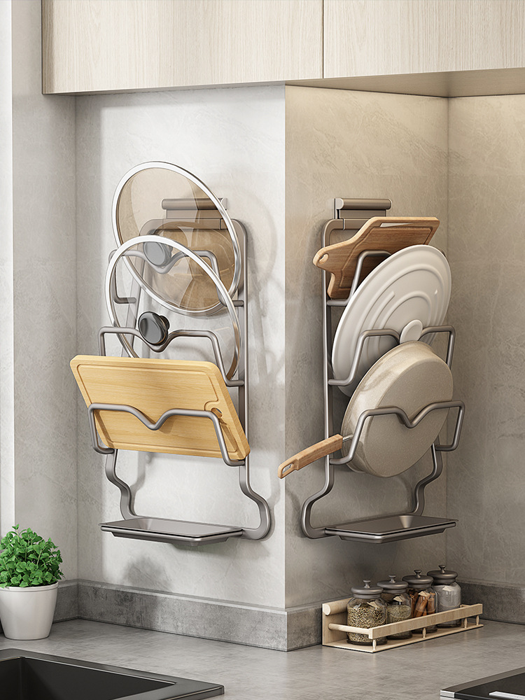 灰锅盖架壁挂式免打孔厨房置物架菜板放置架子砧板挂架收纳神器