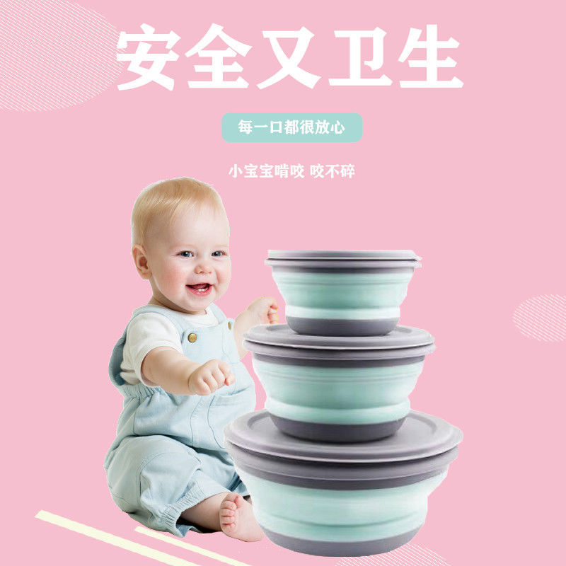 硅胶折叠碗便携户外野餐旅行上班族学生泡面宝宝饭盒压缩餐具套装