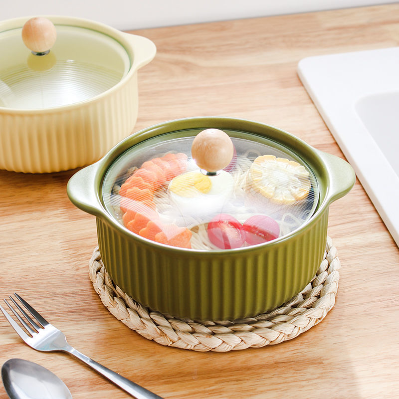 汤盆双耳陶瓷泡面碗带盖学生宿舍方便面碗饭碗汤碗大号餐具亚马逊