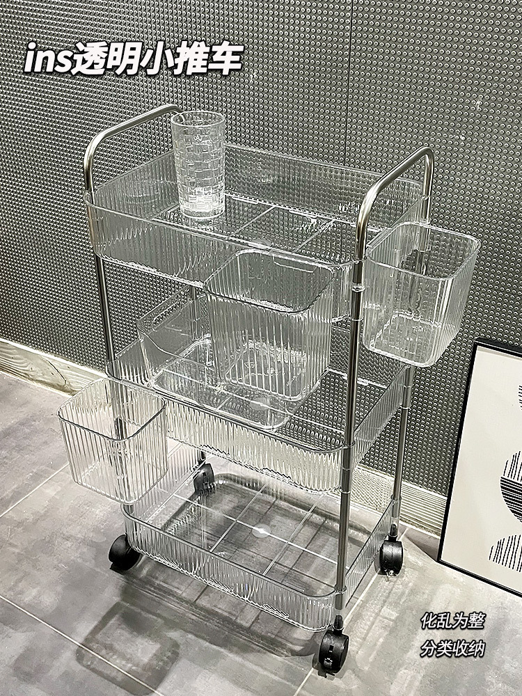 透明亚克力小推车化妆品床头卧室书架零食收纳架子浴室移动置物架