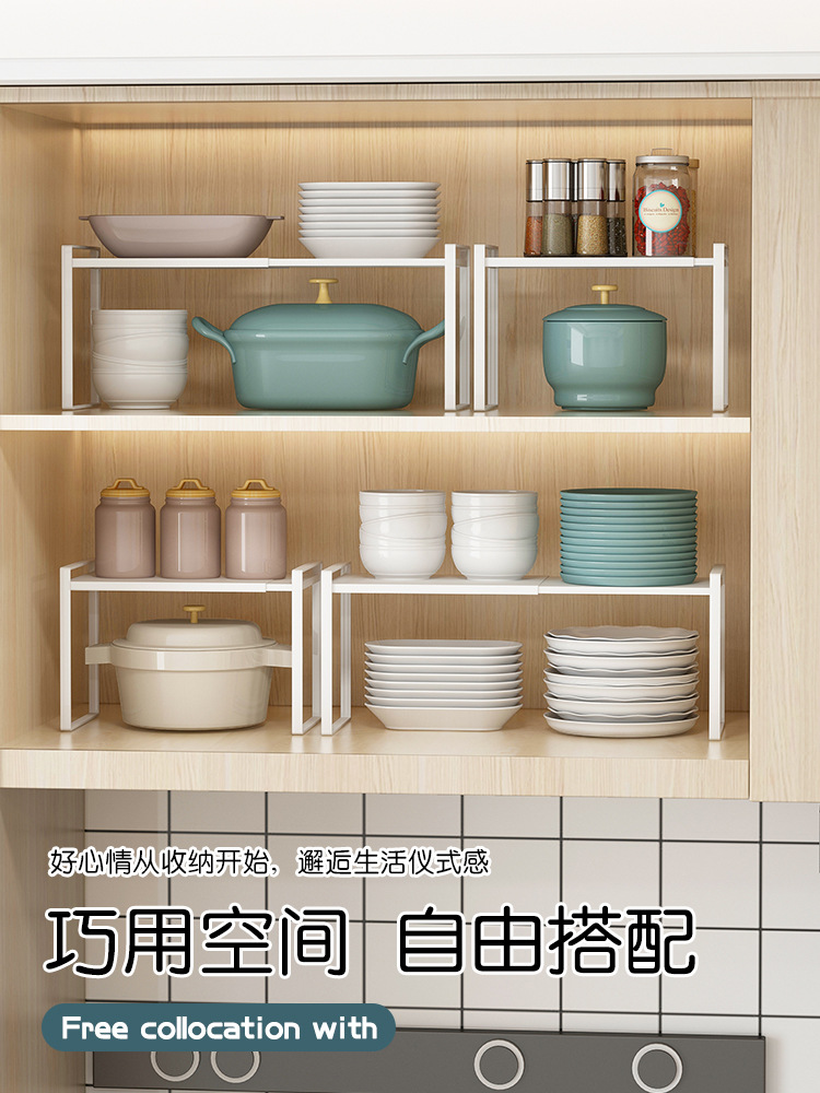 可伸缩厨房置物架台面橱柜内隔板分层架柜子调料收纳架子锅架碗架