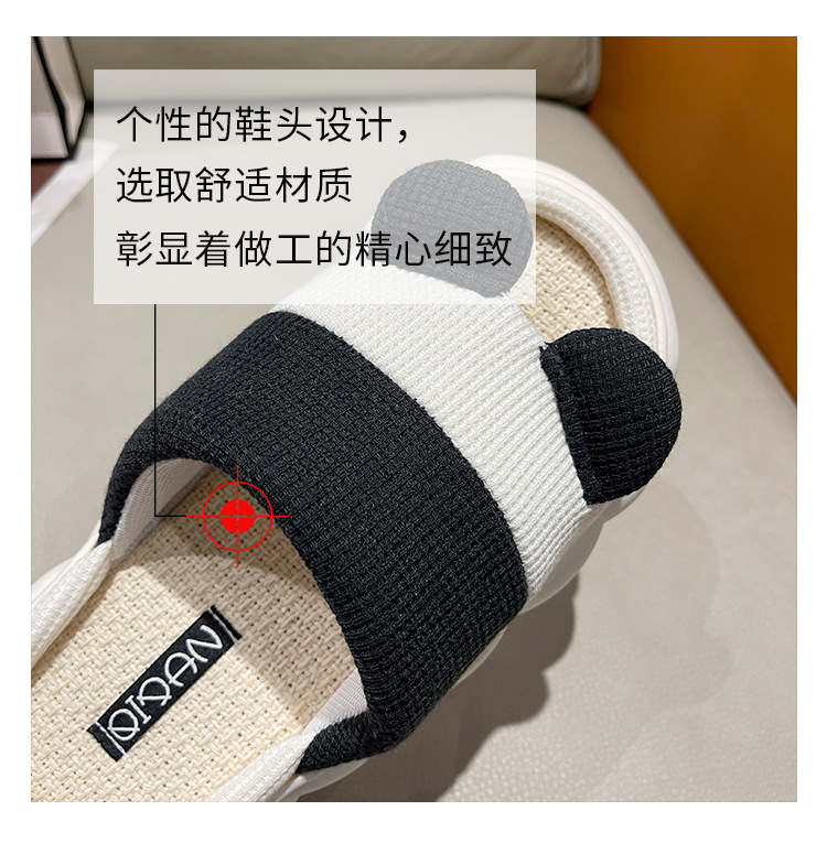 熊猫亚麻情侣拖鞋男女春秋四季室内居家用防滑可爱亚麻吸汗厚底